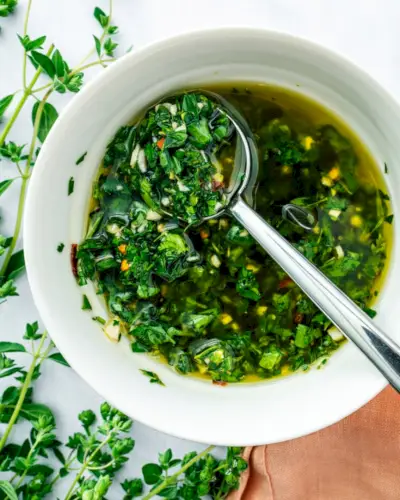 このチミチュリのレシピは、にんにくの風味がたっぷりです!この古典的なアルゼンチンのソースは、ステーキ、魚、野菜などに最適です。