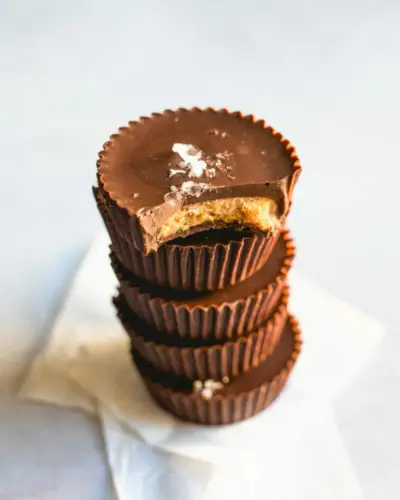 これらの自家製ピーナッツバターカップは本当に完璧で、素晴らしいグルテンフリーのデザートです。このレシピでは、チョコレートをテンパリングして光沢のある光沢を出し、食欲をそそるピーナッツバターフィリングを作る方法を説明します。満足のいく歯ごたえ、ほんのり甘いピーナッツバターの詰め物が適量で、その上に海塩のフレークが数枚かかっています。