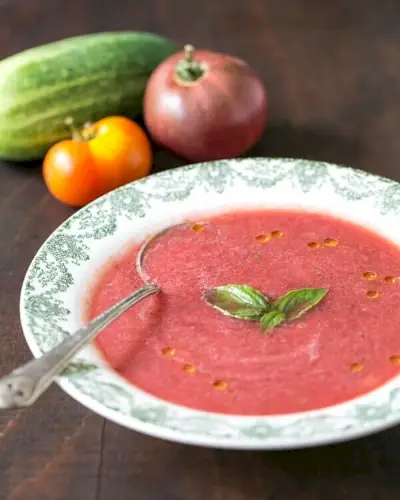 スイカとトマト、キュウリ、エシャロット、ホットソースの組み合わせは少し意外に聞こえるかもしれませんが、とても美味しいです。このスイカのガスパチョのレシピは、気温 100 度の夏の日に最初にプールに飛び散るのと同じくらい爽やかです。スイカをたっぷり使ったスペインの冷製スープです。風味豊かな材料が甘さに対してちょうど良いバランスで、スパイスのほのかな香りが辛すぎることなく複雑さを加えています。
