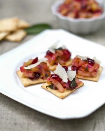 このリンゴとクランベリーの前菜レシピは、甘味と風味が見事にブレンドされています。リンゴとクランベリーを赤玉ねぎ、新鮮なセージ、そして少し複雑にするためにブランデーと一緒にソテーします。パルメザンチーズの削りくずをトッピングすれば、ユニークなおいしいスナックや前菜になります。