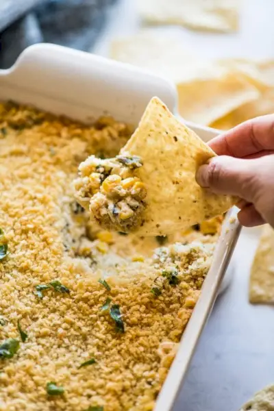 パーティーや簡単なディナーで印象に残る、手早く簡単なディップをお探しですか?メキシコ風のコーンディップをぜひお試しください。このレシピは、 エロート(メキシコのストリートコーン) 、カリカリのトルティーヤチップスと一緒に食べるためのおいしいディップを作るためにそれらをリフティングします。ピリッとしたライム、ピリピリした青唐辛子、そして塩気のある砕いたチーズに、スイートコーンのはじける風味が、本当にたまりません。