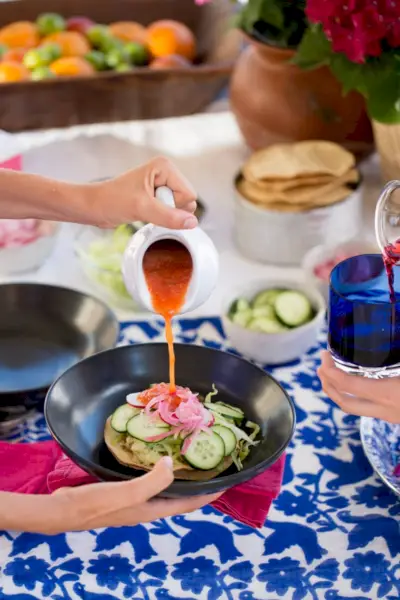 これらのドラウンド トスターダは、伝統的なメキシコのドラウンド タコス、または「タコス ドラドス」をシェフのアレジャンダがアレンジしたものです。カリカリのトルティーヤと新鮮な野菜の上にカルディージョと呼ばれる温かいトマトスープをかけて仕上げます。経由 ブラウンシュガーとバニラ