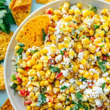 このメキシカン ストリート コーン ディップのレシピは、ライム、チリ、コリアンダー、砕いたチーズなど、ストリート コーンの魅力的なフレーバーからインスピレーションを得たものです。