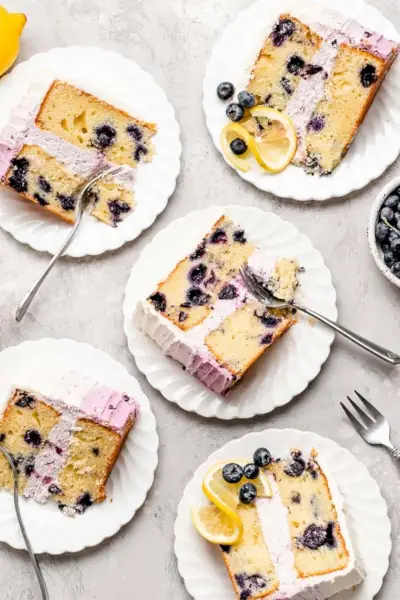 誰もが話題になる素晴らしいブルーベリー デザート、レモン ブルーベリー ケーキをご紹介します。想像してみてください。新鮮なブルーベリーがたっぷり入った柔らかいレモンケーキの層を、ピリッとしたブルーベリー風味のクリームチーズフロスティングでコーティングしたものを想像してみてください。経由 おじいちゃんのケーキ