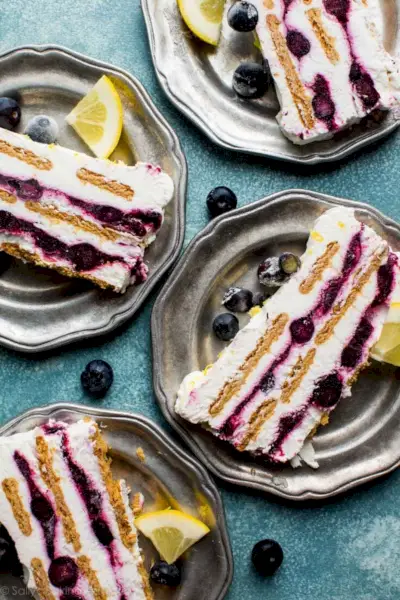 写真提供: サリーズベーキング中毒.comブルーベリーレモンアイスボックスケーキ