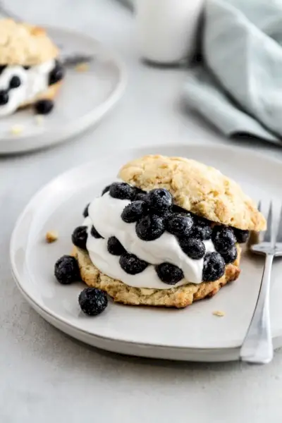 写真提供: www.girlversusdough.comブルーベリーショートケーキ マスカルポーネクリーム添え