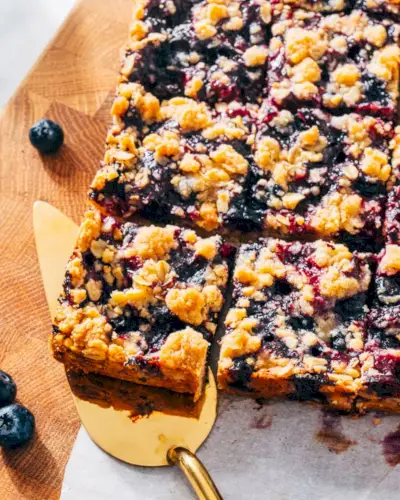 バーにはとても家庭的で魅力的なものがあります(特に私たちのように中西部出身の場合は!)。ブルーベリー パイ バーのご紹介: ブルーベリー パイのすべてのフレーバーをハンドヘルド形式で楽しめます。これらはとてもシンプルで満足です!同じ生地で底の厚いクラストと黄金色に輝くバターのようなクランブルを作り、詰め物には新鮮なブルーベリーとレモン汁が鮮やかに弾けます。