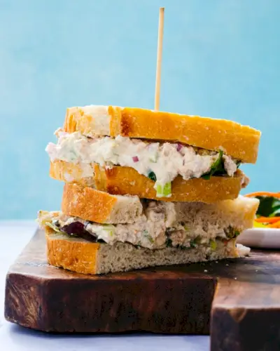 素早く簡単に風邪をひく必要がある ランチのアイデア ?古典的なサーモンサラダサンドイッチをお試しください マグロバージョン !たまらなくクリーミーで風味豊かで、数分で完成します。簡単なランチにはパンに塗ったり、ブランチにはクロワッサンに塗ってみてはいかがでしょうか。いずれにせよ、調理の必要がないこのボリュームたっぷりのサンドイッチを我慢するのは難しいでしょう。