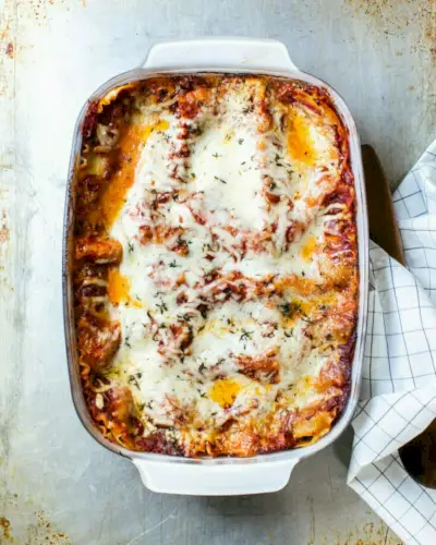 簡単なパスタディナーのアイデアの中で一番人気は、スパイシーなケールのラザニアです。これは、甘くてねっとりとしていて、スパイスの香りがあり、大勢の人を喜ばせます。スピーディではありませんが、焼いている間に片づけもできる簡単パスタレシピです。