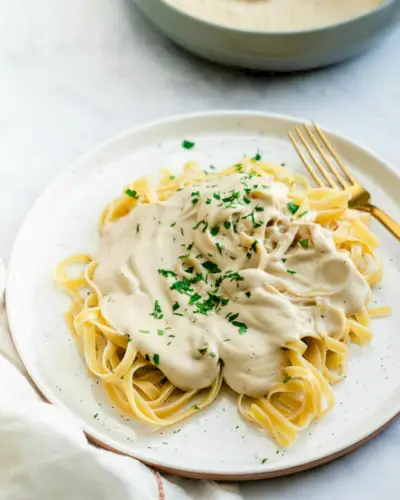 このビーガン フェットチーネ アルフレッドを使えば、あなたの麺は素晴らしいものになるはずです!クリーミーで甘美ですが、栄養豊富なカリフラワーとタンパク質が豊富なカシューナッツがたっぷりです。このビーガン アルフレッド ソースのもう 1 つの利点は、グルテン フリーであることです。アルフレッドソースのレシピの多くに小麦粉が含まれているのは、ソースを濃くするルーを作るために小麦粉が使用されるからです。ある読者はこう言いました。大好きです!作り方はとても簡単です。 2日後にまた作りました!