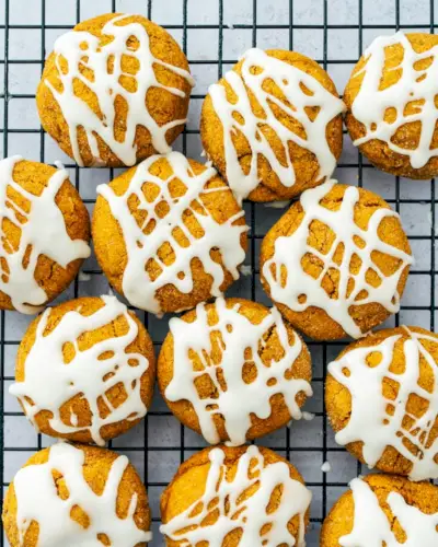 究極のかぼちゃデザート、かぼちゃクッキーです!これらの甘い一口は、甘美でまろやかで噛みごたえがあり、秋のスパイスとほのかな糖蜜の香りが漂います。外側にはほのかなシュガークランチとシンプルな甘いアイシングがかかっています。さらに嬉しいのは、柔らかい質感が何日間も持続することです。