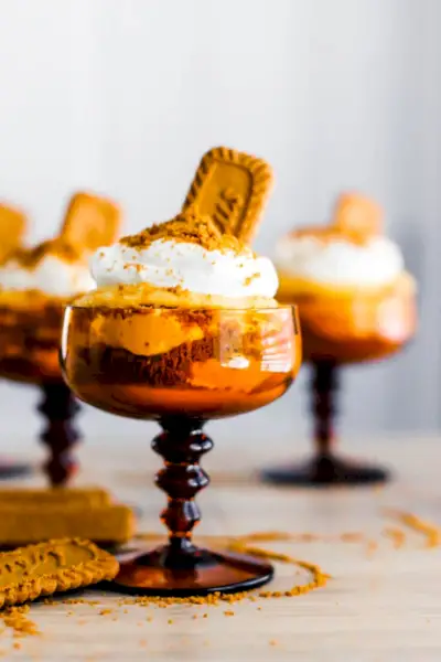 最後は、焼かずに簡単に作れるかぼちゃのデザート、かぼちゃのマスカルポーネタルトです!私たちはこのようなデザートが大好きです。なぜなら、事前に準備しておくのがとても簡単だからです。グラスに入ったパンプキンパイに、カリカリとしたビスコフクッキーの層が散りばめられているようなものです。楽しい!経由 アシュリー・クオコ
