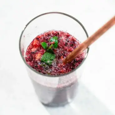 新しいお気に入りのドリンクレシピの準備はできましたか?ウォッカのスマッシュです。ピリッとさわやかで、ブラックベリー、ミント、ライムの香りが特徴です。ピリッと甘くて、後味にウォッカの風味が少しありますが、強すぎるわけではありません。基本的に、これらは簡単に失敗するので注意してください。アレックスと私は、友人たちと町のレストランで食事をしました。もちろん、私たちはそれを再現することに手を尽くしなければなりませんでした。そして、それは私たちが思っていたよりも簡単でした。自宅でベリーウォッカスマッシュを作る方法は次のとおりです。
