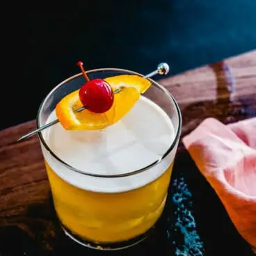 - 濾してグラスに注ぎ、オレンジピールを飾ります。持っているなら、カクテルチェリーが最も伝統的です。クラシックな外観に追加するのが大好きです。