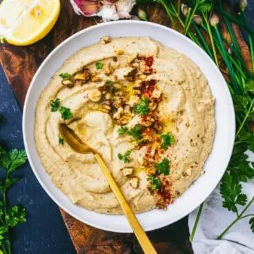 このババガヌーシュのレシピはとてもクリーミーで美味しいです!古典的なレバノンのナスのディップは、前菜のスプレッドや健康的なスナックに最適です。