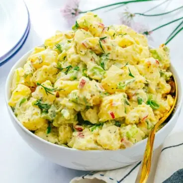 私たちのお気に入りのクリーミーポテトサラダのレシピについては、以下をご覧ください。世界中には家庭料理と同じくらい多くのポテトサラダのレシピがあります。私たちのお気に入りのいくつかを以下に示します。