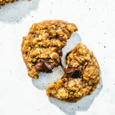 このレシピに入る前に最後のヒントを 1 つ!このオートミール チョコレート チップ クッキーの最高の噛みごたえを実現するために、私たちは次のことを行っています。 それらを少し焼きすぎてください 。でもほんの少しだけ!焼けたらオーブンから取り出します ただ セット。完全に固まる直前に取り出すと、数日間噛み応えのあるクッキーが出来上がります。クッキーをもう少し焼き上げたい場合は、ぜひ長めに焼きましょう。しかし、私たちは歯ごたえのあるものが大好きなので、この方法を強くお勧めします。
